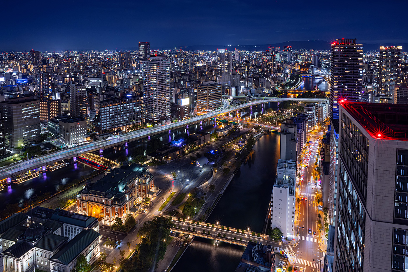 中之岛周边地区是欣赏“充满大阪水城精髓的市中心夜景”的好去处,摩天大楼和其间道路的灯光,以及波光粼粼的河面上反射的灯光交相辉映。