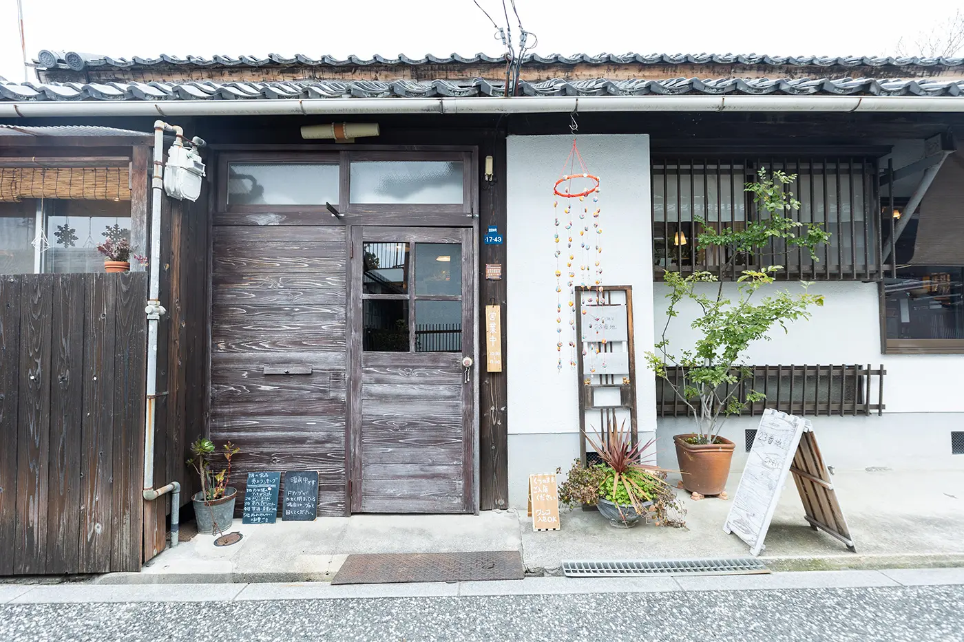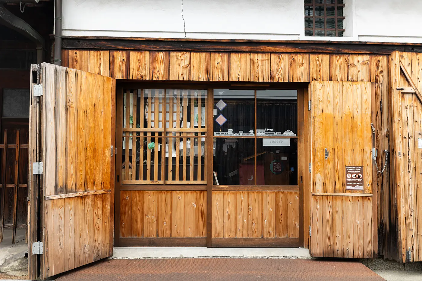 지나이마치의 메인 스트리트·죠노몬스지를 걷고 있으면 동쪽으로 보이는 것이 에도 시대의 끝에 지어진 미린구라·홍매장(사토가 주택). 그 일각은 가게가 되어 있어, 카메이씨의 아틀리에 “지금 옛날의 옥수함”과 자가 로스팅의 커피 콩을 살 수 있는 가게 “평장”이 영업하고 있습니다.