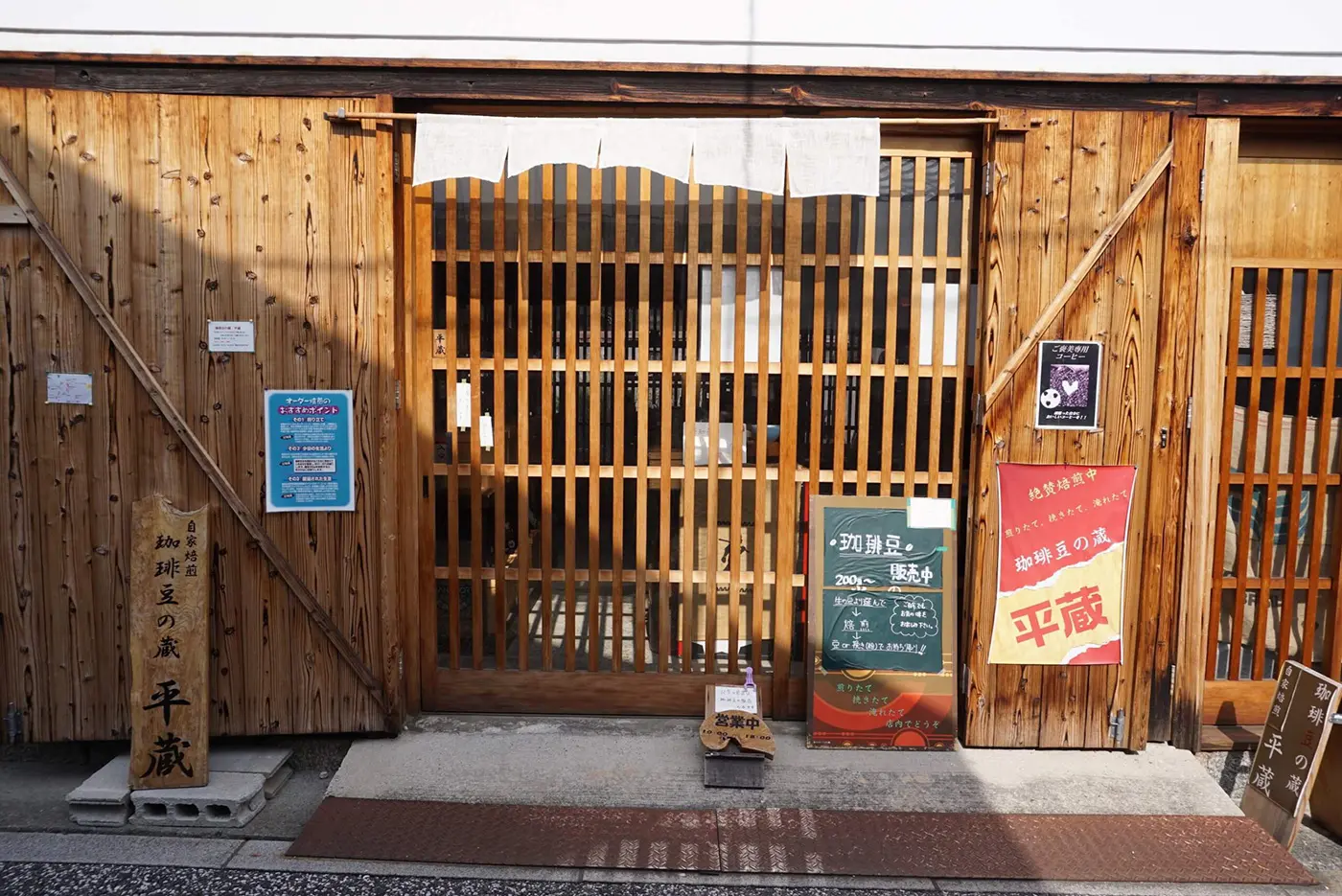 「지금 옛날의 옥수상자」의 옆에는, 고소한 냄새가 감도는 커피콩 판매점 「평장」이. 세계 각국의 농원에서 갖추어진 엄선된 커피콩이 약 15종류 늘어서 있습니다. 주문마다 눈앞에서 볶아 주기 때문에 볶은 커피 콩을 가져갈 수 있어 기쁩니다! 가게 안에 있는 큰 구부러진 들보는 매우 드물다고 하고, 개수시에 손을 대지 않고 소중히 남겨진 것이라든가. 130년 전의 미린구라를 그대로 느낄 수 있는 공간도 볼거리입니다.
