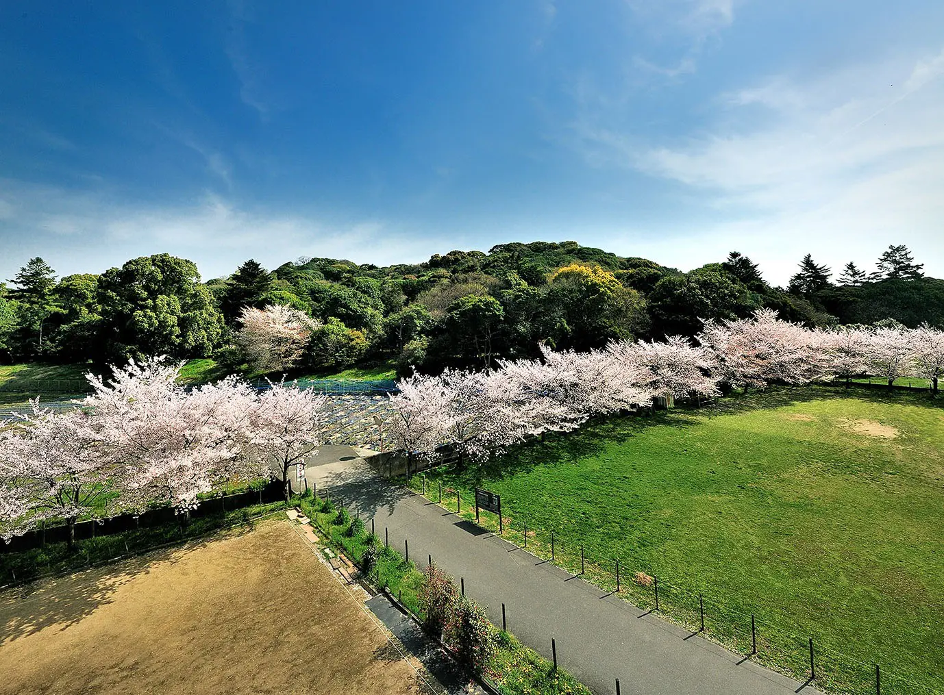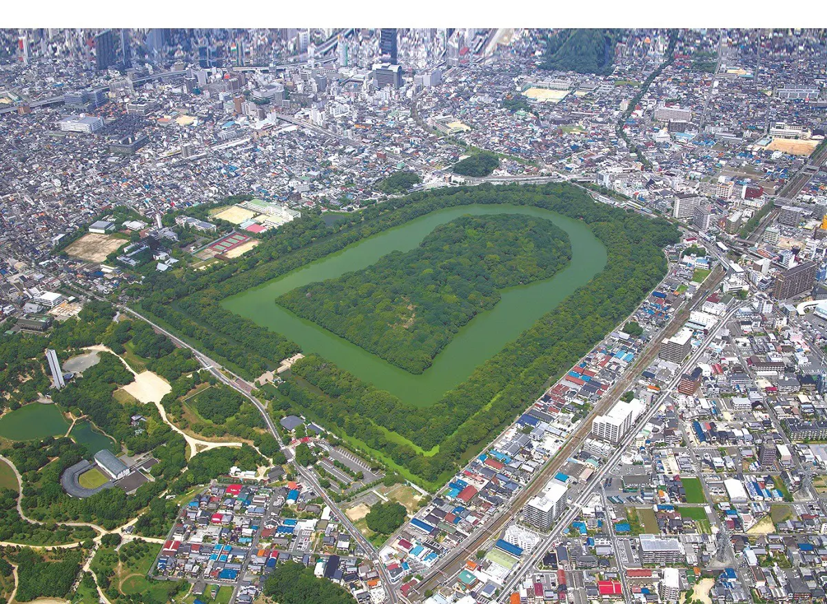 수면에 비치는 모습이 아름다운 중애 천황릉 고분을 둘러싼