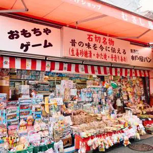 吃完午餐後,在連綿的參道上閒逛。沿著商業街前進的話,傳統的玩具店、烤煎餅店、小商店等,各種各樣的店鋪鱗次櫛比。
