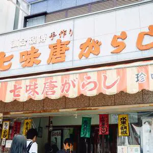 創業約60年的“七味唐ashi珍味堂”。可以買到風味豐富的手工七味唐裝。味道濃郁的辣椒粉和香味濃郁的花椒粉也很受歡迎。