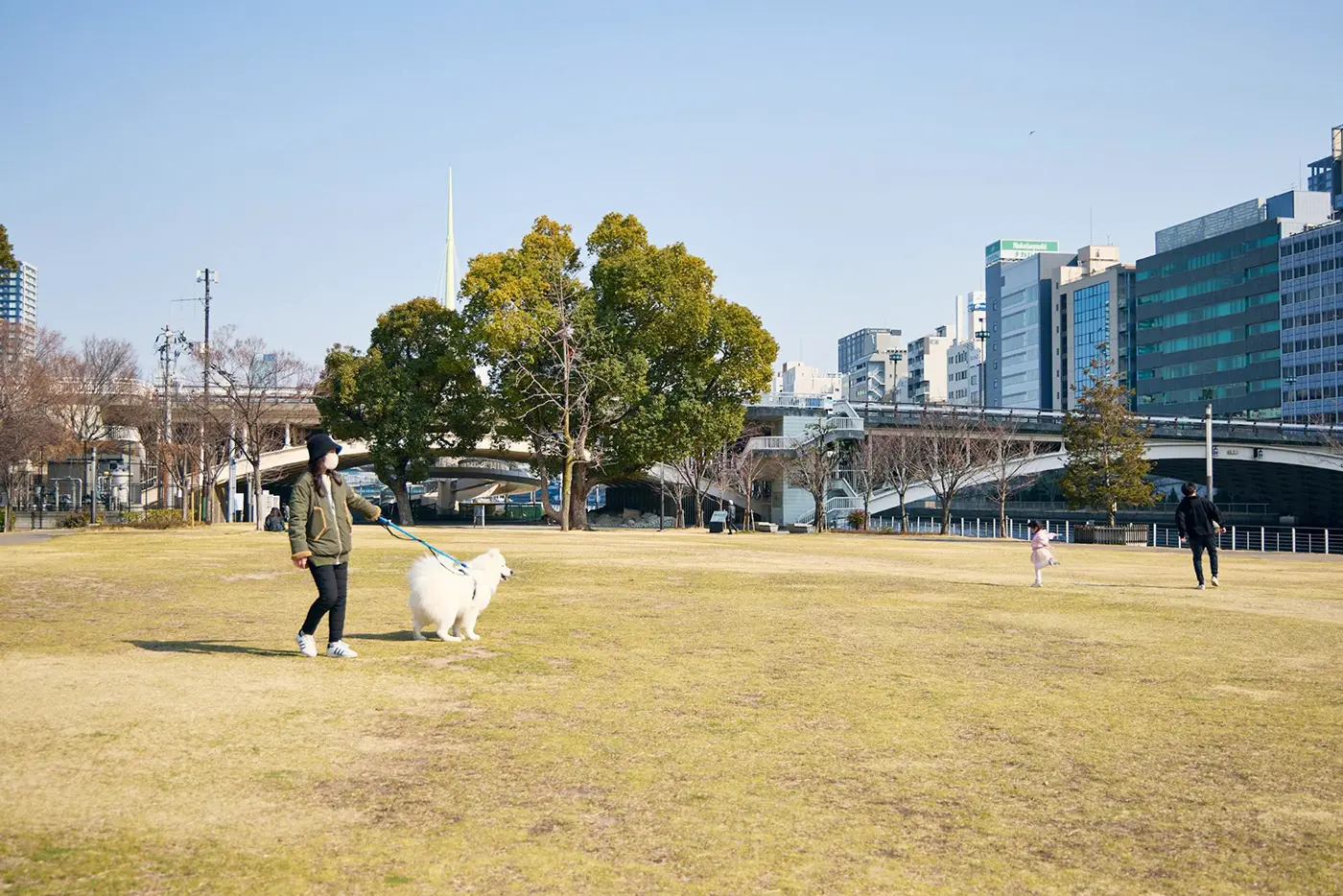 公園內外散落大阪市中央公會堂、大阪府立中之島圖書館等歷史建築。它們與背後拔地而起的摩天大樓形成鮮明對比,構成了中之島獨具特色的美麗景觀。沿著濱水步道漫步,可以飽覽自然與都會文化和諧交融的全景,是散步和攝影的理想場所。